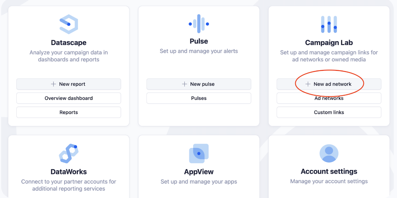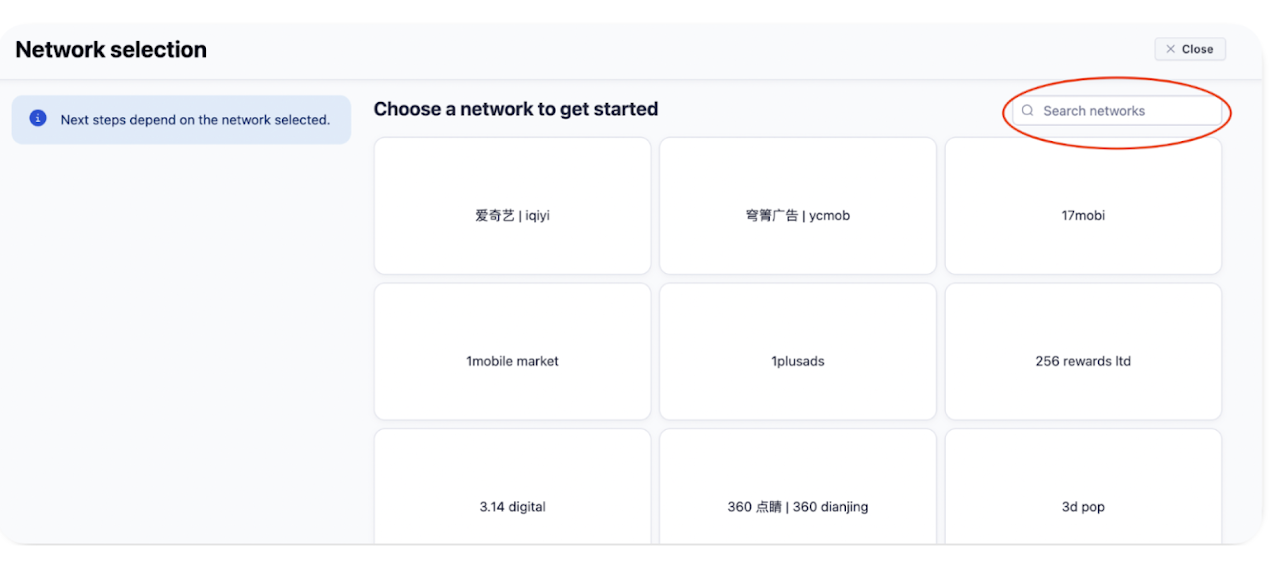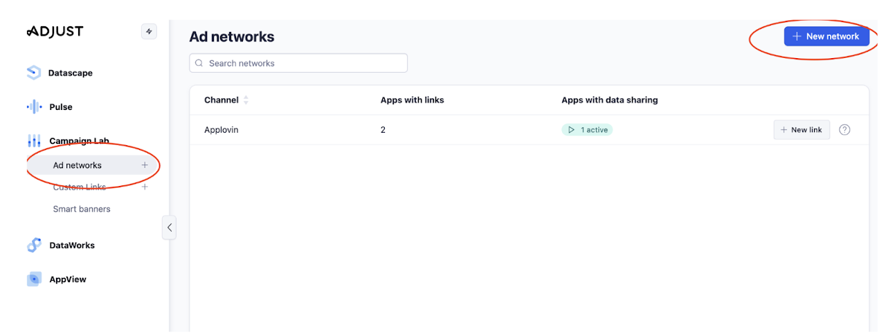 Another way to do this is to pick either the “Ad networks” section on the left side menu and click on the “New network” button on the upper right corner.