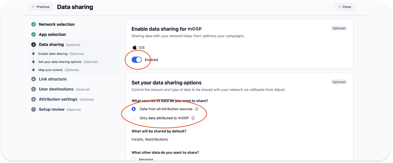Make sure to enable data sharing in the “Data Sharing” section for us to be able to effectively track the campaign.