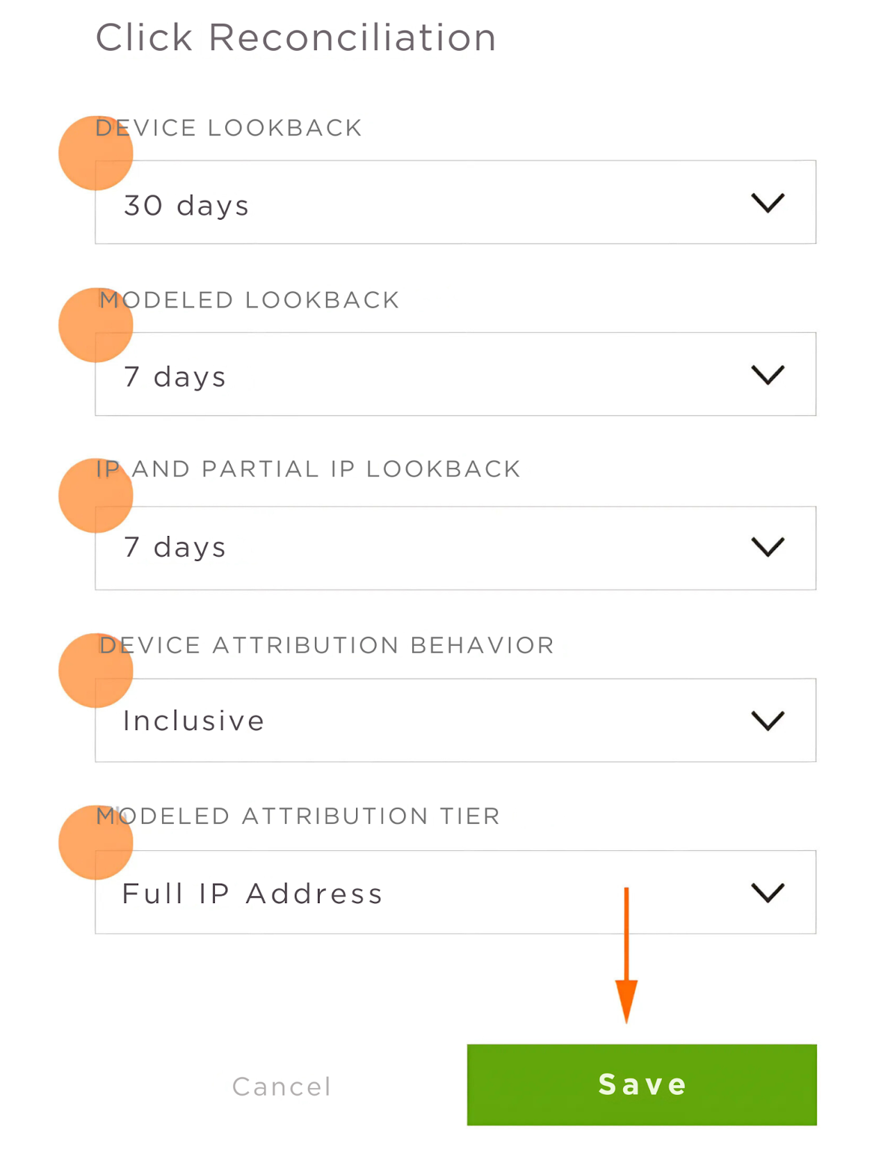 • By default, Device Attribution Behavior is set to "Standard". The "Standard" setting will not attempt fingerprinting if a Device ID is present. The "Inclusive" setting, on the other hand, will attempt fingerprinting on all clicks.